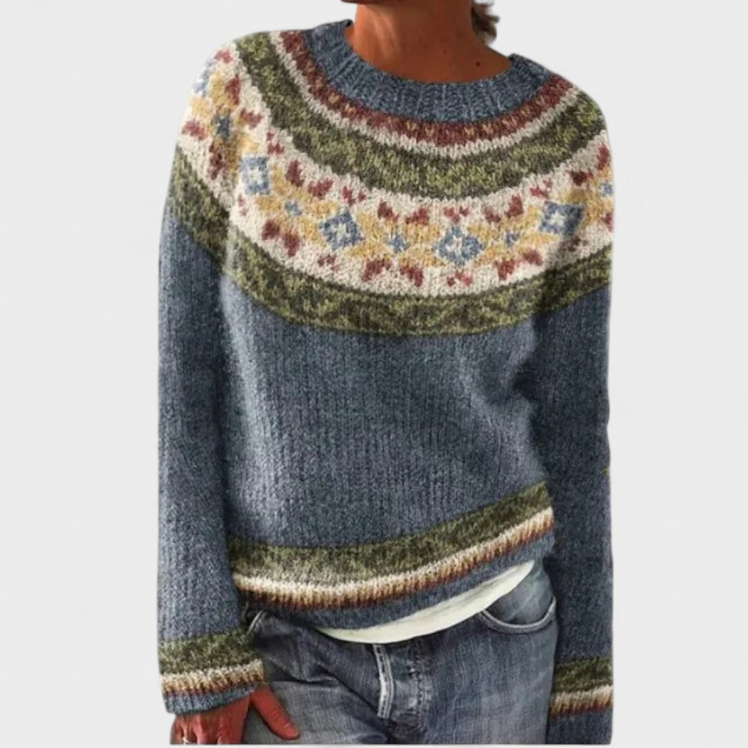 "¡Me encanta este suéter! El patrón colorido es perfecto para alegrar los días grises del invierno. Es increíblemente suave y me mantiene realmente abrigada. ¡Recibo tantos elogios cada vez que lo uso!" – Carla, Barcelona
